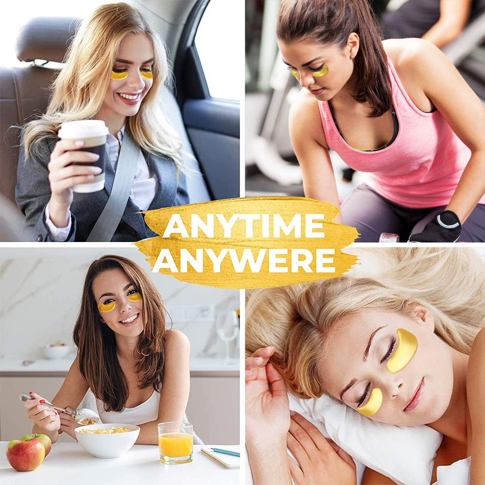 Vandarllin24K Gold Powder Gel Collagen Eye Masks Sheet Patch, Remove Bags,Dark Circles &Puffiness,Reduce Wrinkle,Moisturising,Hydrating for Blackheads (50Pairs)