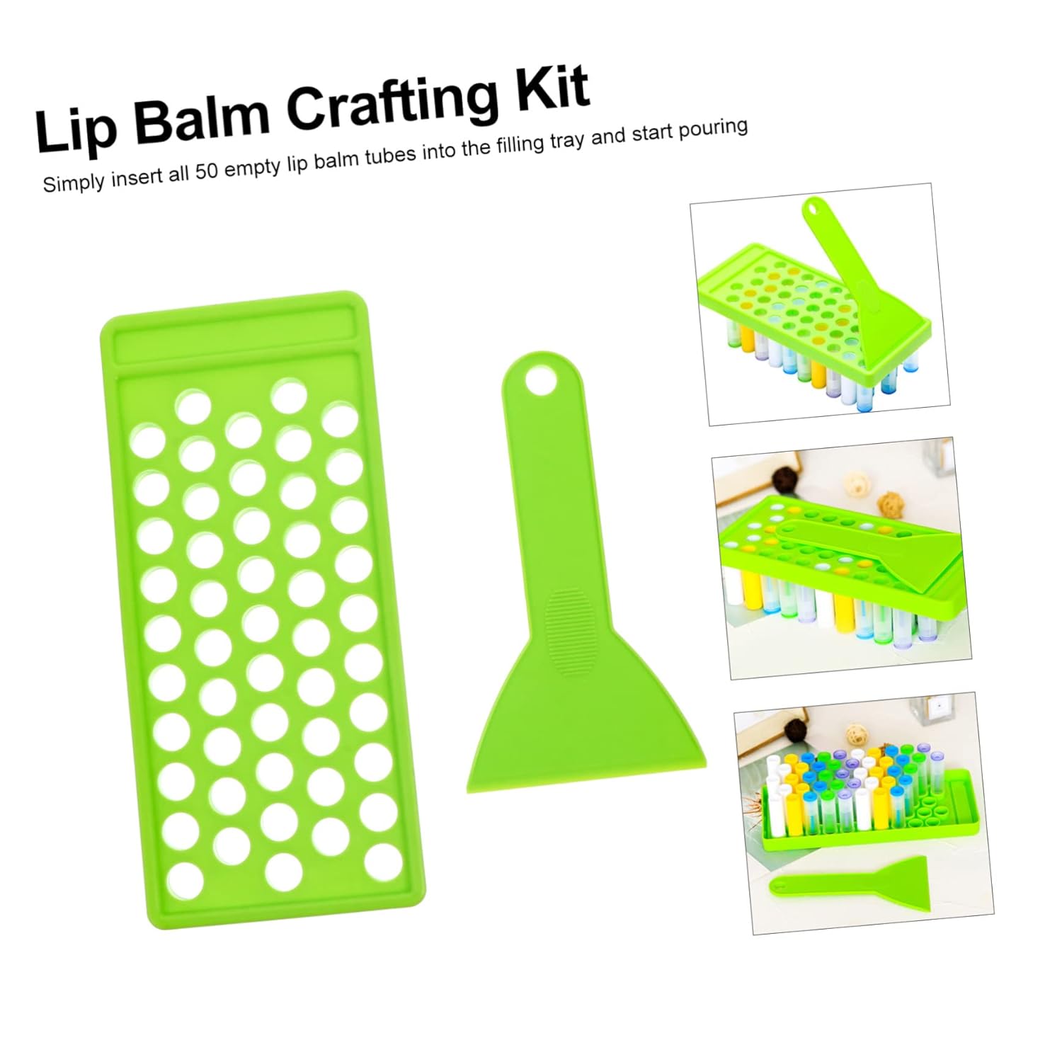- DIY lip balm kit-- - easy to use: just insert all 50 empty lipstick tubes into the filling tray and start pourings.