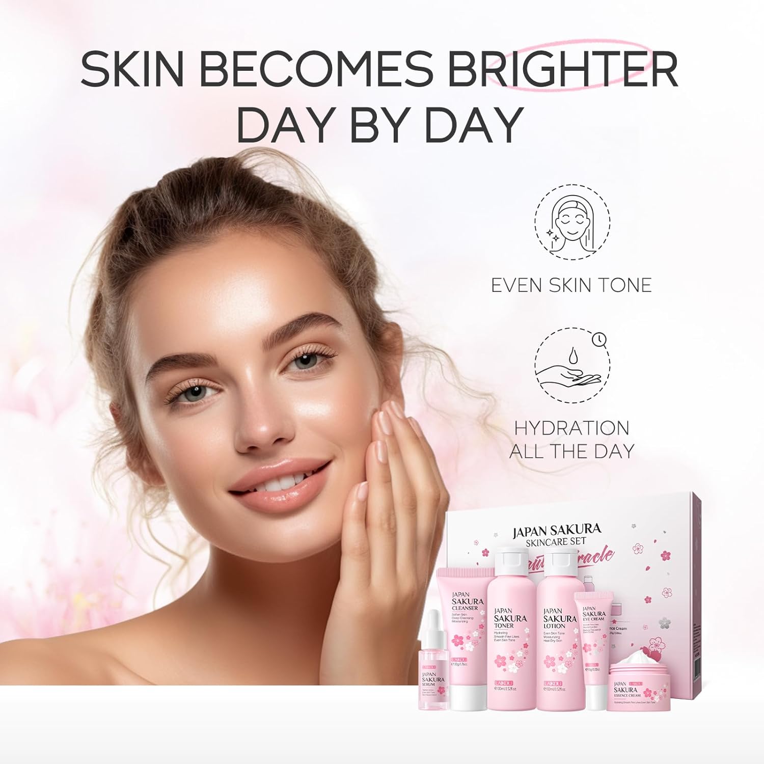 Skin Care Set JAPAN SAKURA Women Beauty Gift Sets Skin Care Kit with Cleanser, Toner, Lotion, Serum, Eye Cream, Face Cream Travel Kit for Women Teen Girls Mom Daughter TSA-friendly Sizes 6pcs