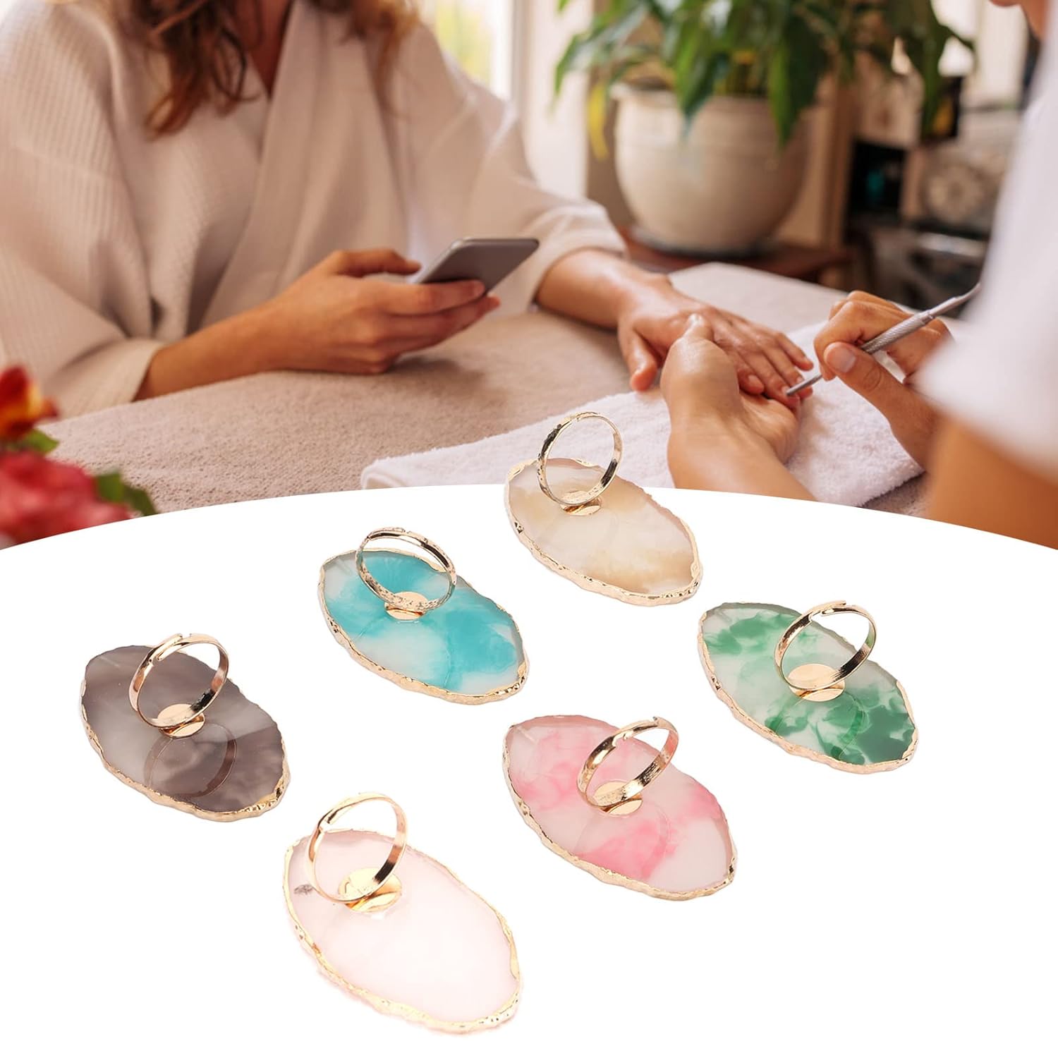Nail Art Palette, 6pcs Wearable Soft Resin Nail Art Palette Ring, Resin Nail Art Palette Compatiable for Make-Up Beginners and Make-Up Schools