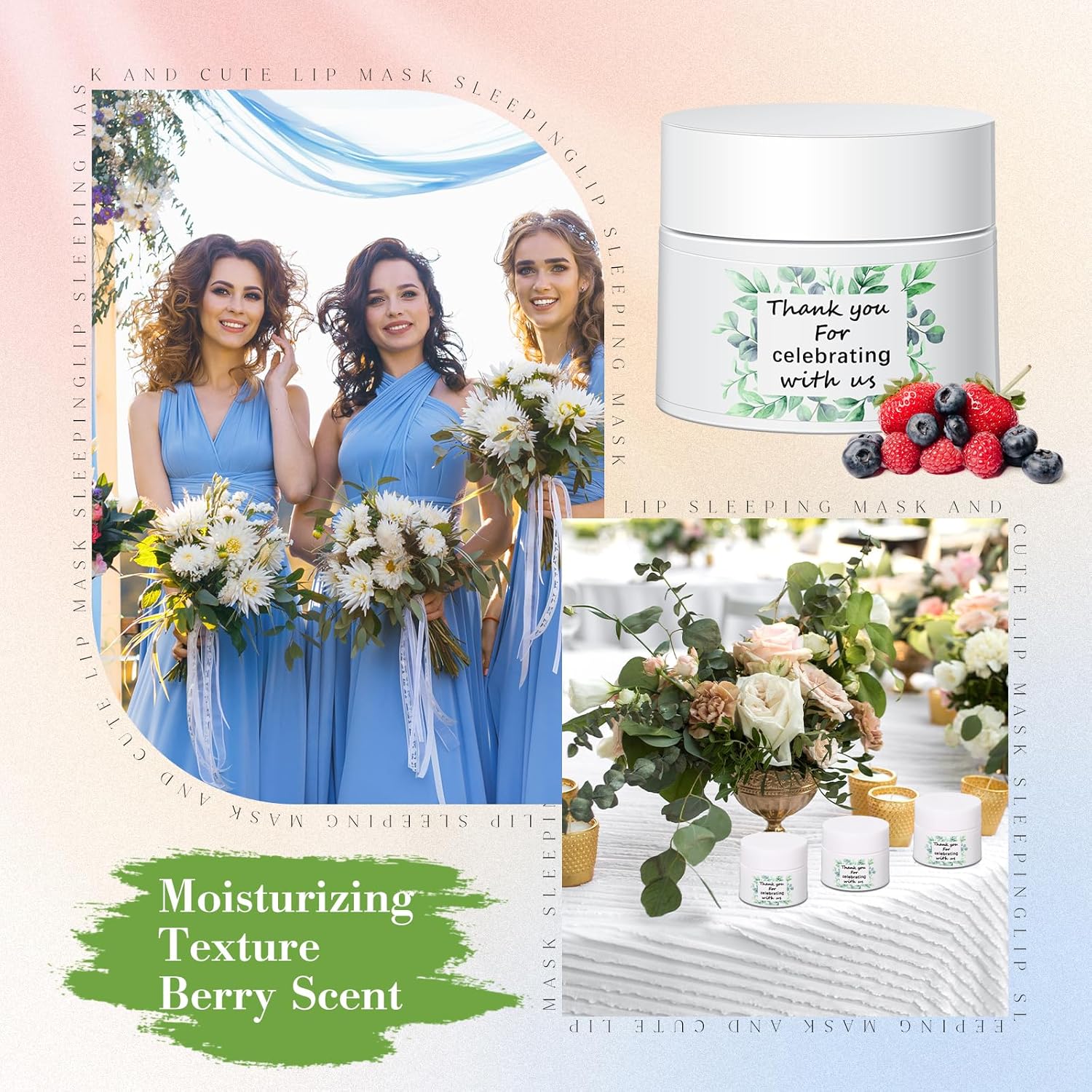 - Elegant theme design: Our mini wedding lip mask overnight adopts the eucalyptus leaf pattern of the wedding, and comes with 'Thank You For Celebrating With Us' to create a sense of happiness, giving the product a sacred feeling that is more in line with the theme of wedding gift giving, enhancing the atmosphere of the party, It can more accurately express our gratitude to the guests