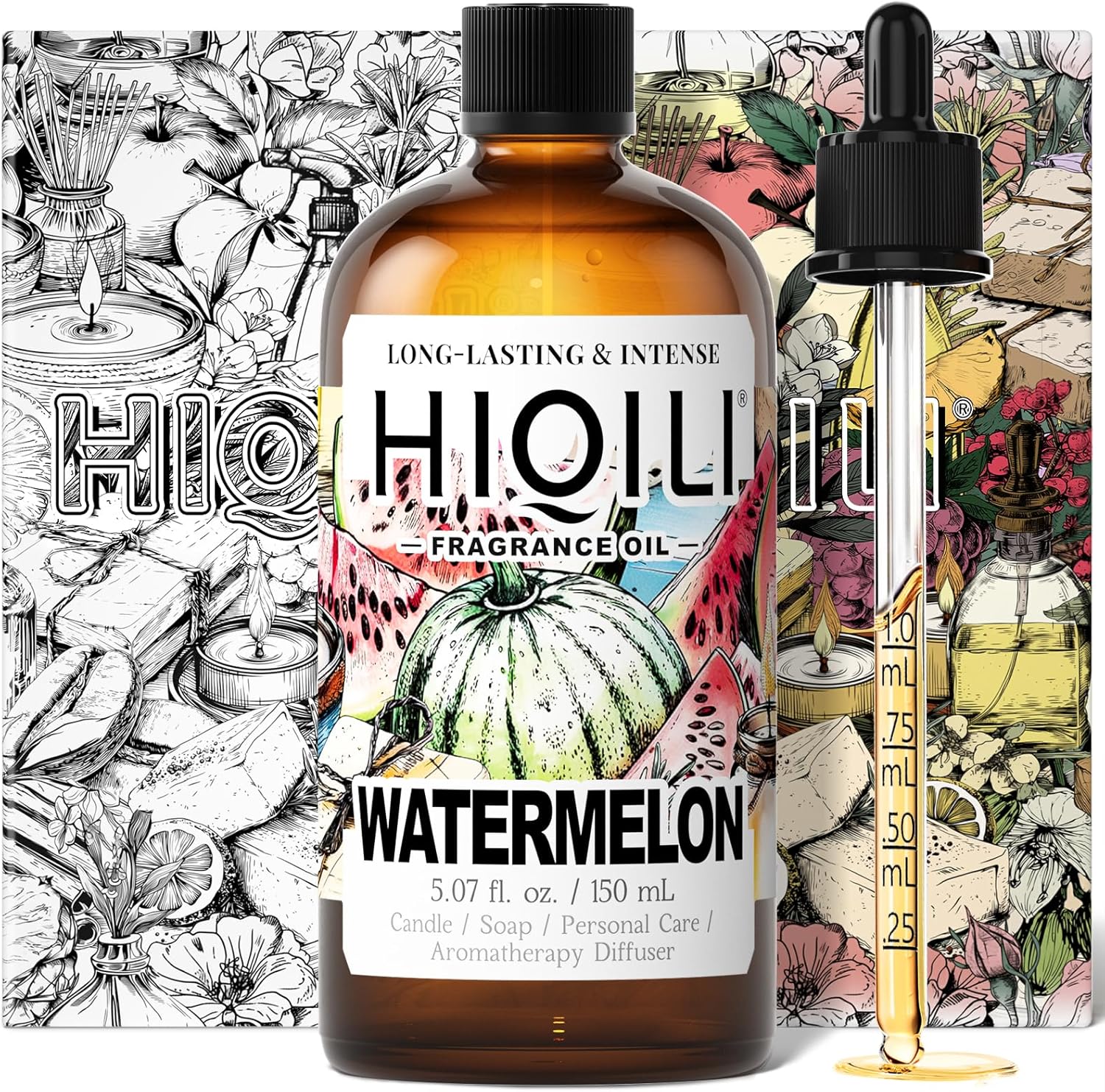 HIQILI Watermelon Fragrance Oil for Candle & Soap Making, DIY Fruity Perfume, Bath Bombs, Long-Lasting Diffuser Oil, Skin Care - 5.07 Fl Oz